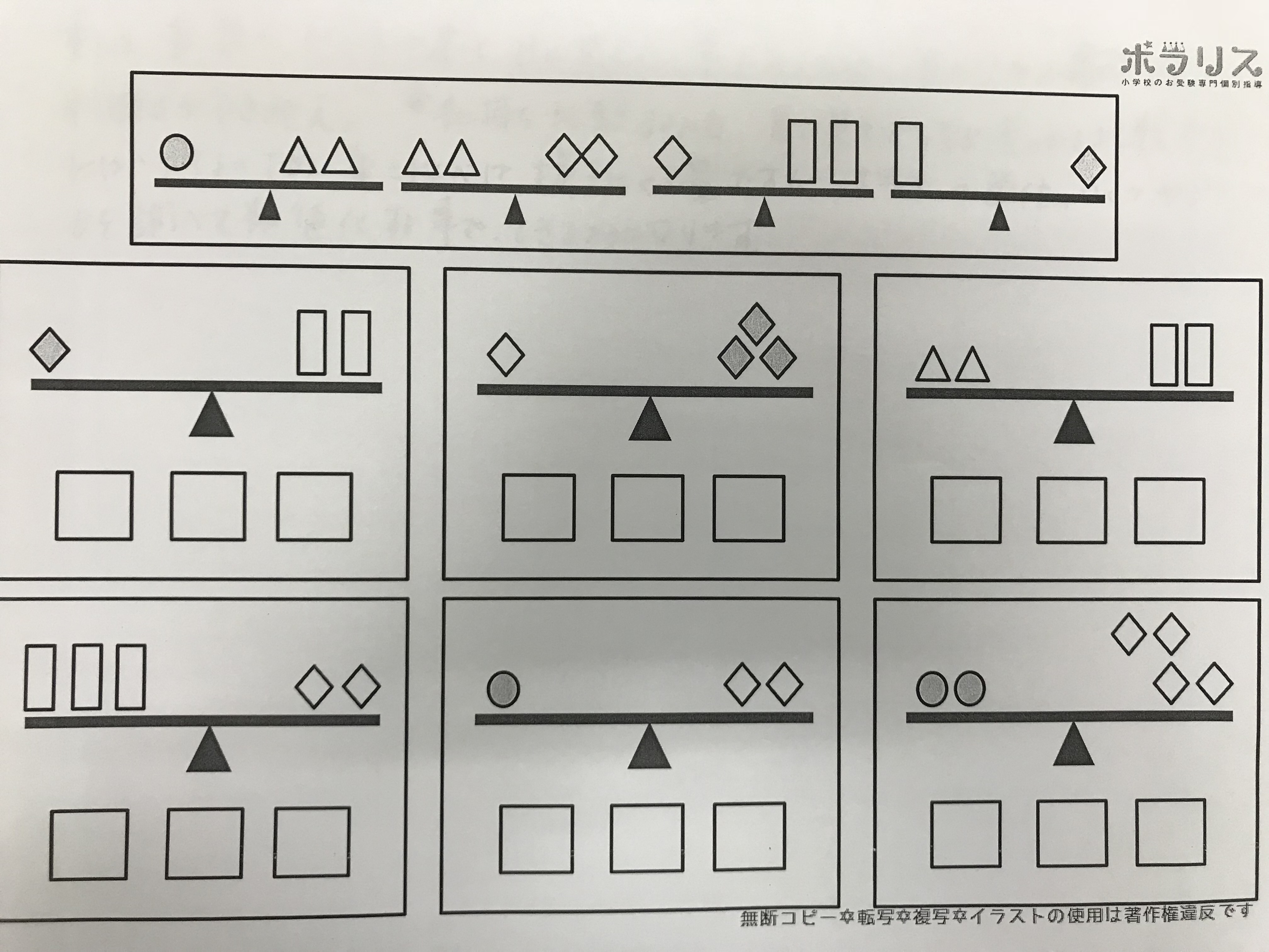 左のシーソーは、つりあっています。
