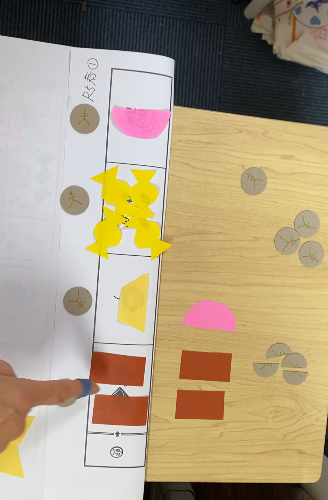 午前中、土の中で育つものに⚪︎土の上のものに△というプリントをした時